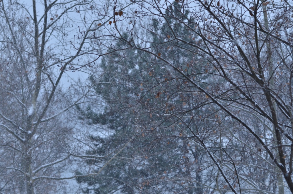 Ma a nap nagy részében változó, többnyire gyenge és mérsékelt intenzitású havazás volt a térségben, 12 óra és 14 óra között azonban erõs, már-már intenzív részek voltak. Sajnos mire összekészültem, az erõs havazás megszûnt, de a szomszéd kapuja elõl azért telefonnal lõttem egy képet az intenzív részrõl: Link
