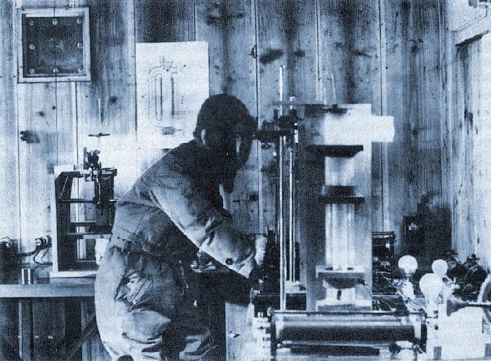 Ha azt akarjuk szimulálni, ami egy felhõ belsejében is lezajlik, a dróttût a növekvõ kristállyal a kamra belsejében más és más helyre kell tenni. Amikor kialakul a jégmag s elkezd kristályformát ölteni, lekapcsolják az áramot, áthelyezik a tût a kristálykezdeménnyel együtt a kamra más hõmérsékletû részébe, újra bekapcsolják az áramot, a kristály pedig tovább növekedik. http://snowhunter.extra.hu/index_elemei/ho_video.gif Laboratóriumban mindez természetesen megörökíthetõ, látványos animációban figyelhetjük meg, miként alakul ki a hópehely. Növesztettek hópelyheket vékony szálakon is, a már említett Ukicsiro Nakayama például nyúlszõr szálán készített "természetazonos" hópihét. Nakaya a hólaboratóriumában Ha majd elérkezik a sokak által várt havazás, érdemes egy kis kézi nagyítóval vizsgálgatni a hópelyheket, megfigyelni alakjukat, a havazás ideje alatt ennek változását.