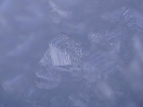 Miért nem hatszögletû a dér, a zúzmara vagy az ablakon növekvõ jégvirág? Ezek a kristályok nem szabad levegõben alakulnak ki, hanem valamilyen tárgy felületén. A tárgyak sosem egyenletesek, rajtuk kisebb-nagyobb hibák, por, kinövések, szõrök vannak. A jég ezen hibákon kezd növekedni, ám a felület, amelyen nõ, térben változik, így nem egyformák a körülmények a jegesedés számára. Figyeljük meg, amint télen pl. a buszok ablakán a vandálok által belekarcolt csíkok mellett kezd a jégvirág növekedni! A karc a szélein egy kissé felpúpozza a felületet, ha nagyítóval nézzük, láthatjuk a hegyes éleket, csúcsokat, melyekre elkezd kifagyni a vízpára. Még nagyobb nagyítással bármilyen tárgyon láthatunk olyan felületi hibákat, amelyeknél elindulhat a jegesedés.