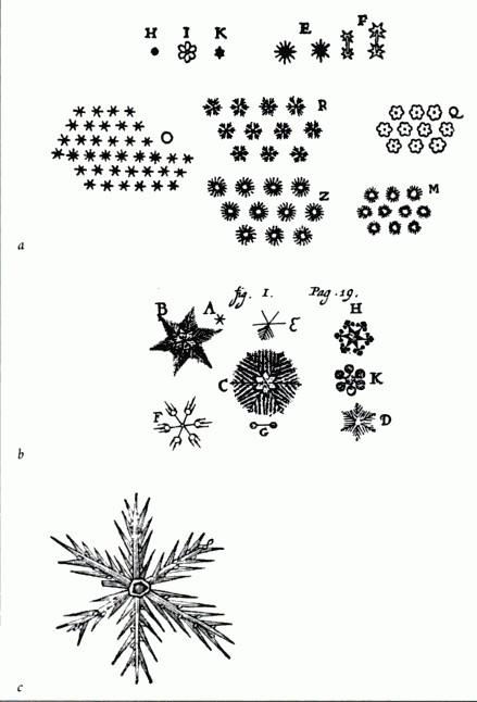 A hópelyheket tudományos kíváncsisággal tanulmányozta már Kepler és Descartes is, Robert Hooke pedig mikroszkóp alatt is vizsgálta õket s készített róluk remek rajzokat.