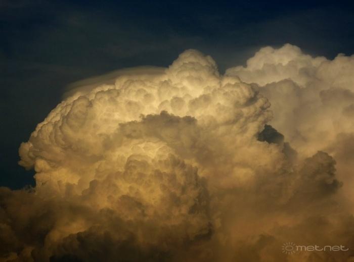 A szept. 1-i hidegfront elõtt magasba törõ gomolytorony (Cumulus pileus) Dunaújváros felett, Bluli felvételén