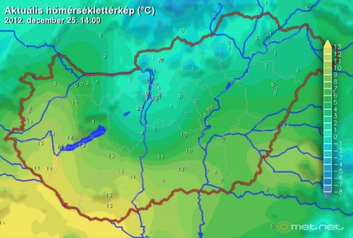 Magyarország idõjárása is a decemberi átlag felett alakul. A tegnapi hõmérsékleti maximumot Kaposváron mérték, ahol 14.2 °C-ot mutatott a hõmérõ.