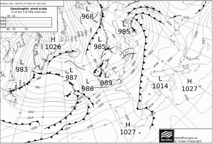 Nyugat-Európában egy nagy kiterjedésû ciklonrendszer helyezkedik el, addig Kelet-Európa idõjárását egy anticiklon határozza meg.