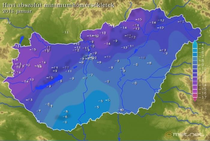 Az érdekességhez hozzátartozik, hogy a legmelegebb területek voltak egyben a leghidegebbek is. A -16.2 °C-ot Gyõrszemerén mérték mértek.
