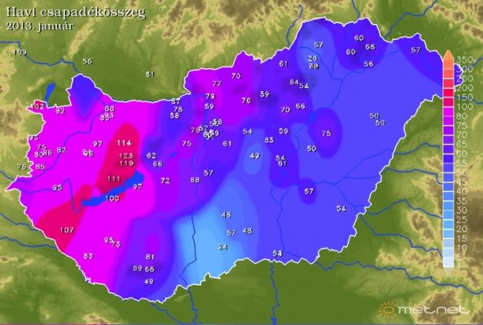 A 2013-as év elsõ hónapja az elmúlt évek januárjaihoz képest hõmérsékletileg átlagosan alakult. Fõként ciklonok határozták meg a januári hónap idõjárását. A hónap közepétõl mediterrán ciklonos idõszak kezdõdött, amely során az ország egész területén csapadék hullott. A csapadék halmazállapota az évszakhoz megfelelõen, hó volt.