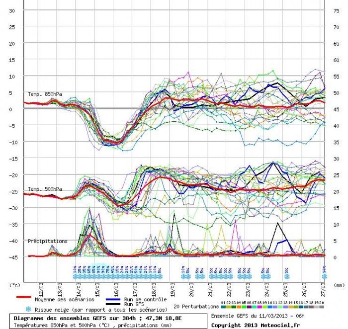 Markáns idõjárás-változás elõtt talán a legfontosabb és leginformatívabb képeket a fáklyadiagramok szolgáltatják. Ezekrõl a diagramokról leolvasható a várható 850 hPa-os (kb. 1500 méteres) hõmérséklet, a csapadékmennyiség, illetve azok valószínûsége.