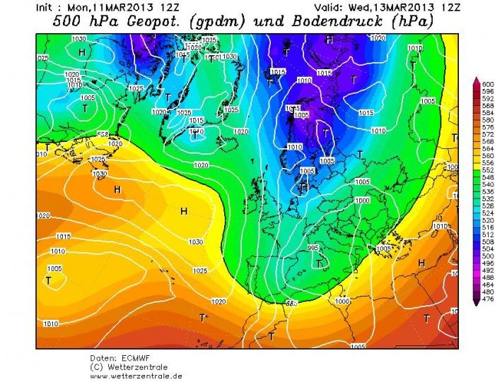 A 2012/13-as tél az átlagostól kissé enyhébb és jóval csapadékosabb volt, elsõ tavaszi hónapunk beköszöntével pedig valóban tavaszi idõ kezdõdött kis hazánkban. Az utóbbi napokban a nyugati-délnyugati többközéppontú ciklonrendszer elõoldalán még enyhébb levegõ érkezett hazánk fölé, így a naposabb területeken 15 fok fölé emelkedett a hõmérséklet, sõt helyenként egészen 20 fokig kúszott a hõmérõ higanyszála, a napi középhõmérséklet pedig 7-8 fokkal az átlag fölött alakult.Mindeközben Európa északi, északkeleti területein (Skandinávia, Kelet-európai-síkság) tombolt és továbbra is tombol a tél, az idei szezon egyik legerõsebb hidegbázisa alakult ki. Ha pedig a kellõ hidegbázis rendelkezésre áll, már csak egy optimális makrofelállás (nyomáselrendezõdés) szükséges ahhoz, hogy a sarkvidéki hideg zöld utat kapjon Európa középsõ és déli területei felé. A két legnépszerûbb idõjárási modell (GFS és ECMWF) napokkal ezelõtt már pedzegetni kezdte ennek a hidegleszakadásnak az esélyét, ám akkor még csak sejteni lehetett, ami most már egyre biztosabbnak tûnik: nem ússzuk meg téli intermezzo nélkül elsõ tavaszi hónapunkat. Beszéljenek hát a lehetséges jövõt vizionáló képek.