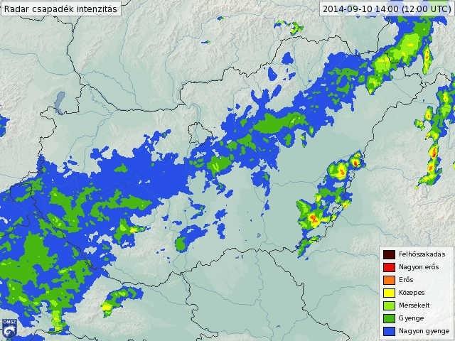 5. ábra: kompozit radarkép 2014. szeptember 10-én 12 UTC-kor (metnet.hu)