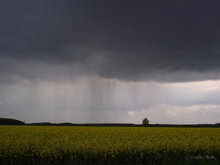 Április 24-én, vasárnap kora hajnalban érte el az országot az a markáns hidegfront, mely mögött jelentõs lehûlés érkezik. A front elõtt szombaton a Dunántúlon és a Duna-Tisza közén szórványosan záporok, zivatarok is kialakultak, majd a front mentén már több helyen volt esõ, zápor. Lokálisan jelentõs mennyiségû, 10-30 mm csapadék is hullott, de országosan még nem mérséklõdött a "szárazság". Ráadásul a front mögött a Dunántúlon és északkeleten megerõsödik, helyenként viharossá fokozódik az északi szél, mely ismét szárítja majd a talajt.