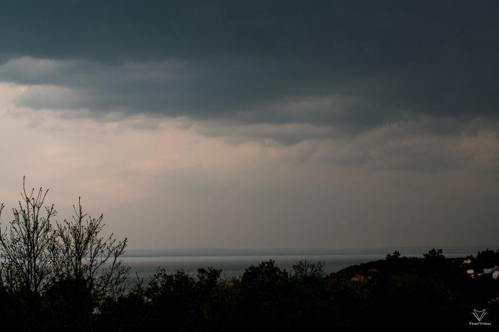 Nyugat felé a naplementében még csapadéksávot láttunk, illetve ebbe az irányba volt pár lecsapó villám is, de sajnos ez is hamar elgyengült. Mivel úgy tûnt hogy ezzel stabilizálódott a légkör, így mi is lassacskán hazaindultunk. A Balatonvilágosi magas partról még megpróbáltunk villám fotózni (a Bakony felett újabb keletkezés volt), de mivel nagyon messze volt, és nem tûnt hosszú életûnek, ezért itt nem folytattuk tovább tevékenységünket.
