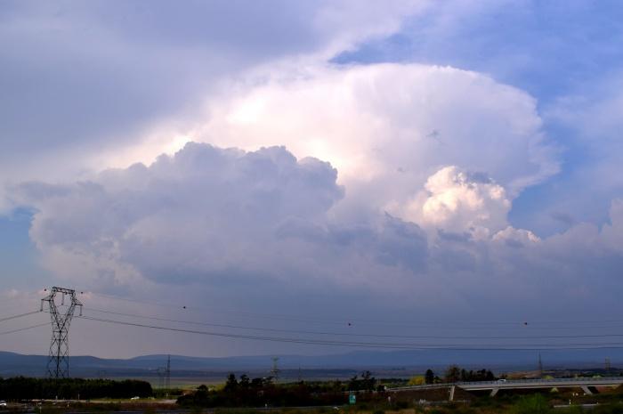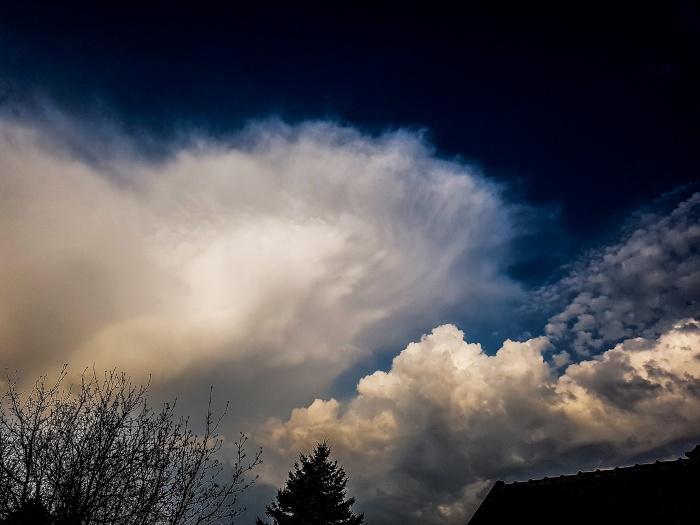 1 órás várakozás után viszont percek alatt "robbant" a légkör. A mellettünk növekedõ gomolyból (aminek végignéztük az útját) egyszer csak villámtevékenységet észleltünk, a blitzortung szerint 4-5 km-re. Öröm és boldogság, a létezõ legjobb helyen voltunk és a szezon elsõ dörgését sem volt utolsó meghallani, fél év holtszezon után. Azonnal utána akartunk menni, viszont ebben a pillanatban a szinte felettünk lévõ gomoly is brutális növekedésbe kezdett, és már kopogott is a fejünkön a nagycseppes zápor.