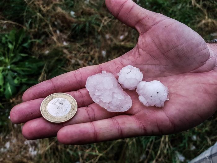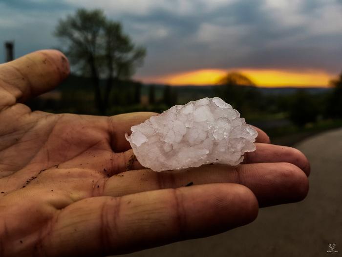 A Tihanyi félszigetre érve megdöbbentõ látvány fogadott minket. Az elõrejelzésekkel ellentétben, heves kategóriát elérõ jégesõ nyomaira bukkantunk. (3-3,5 cm). A fák rügyeit is megsínylették ezt a délutánt.