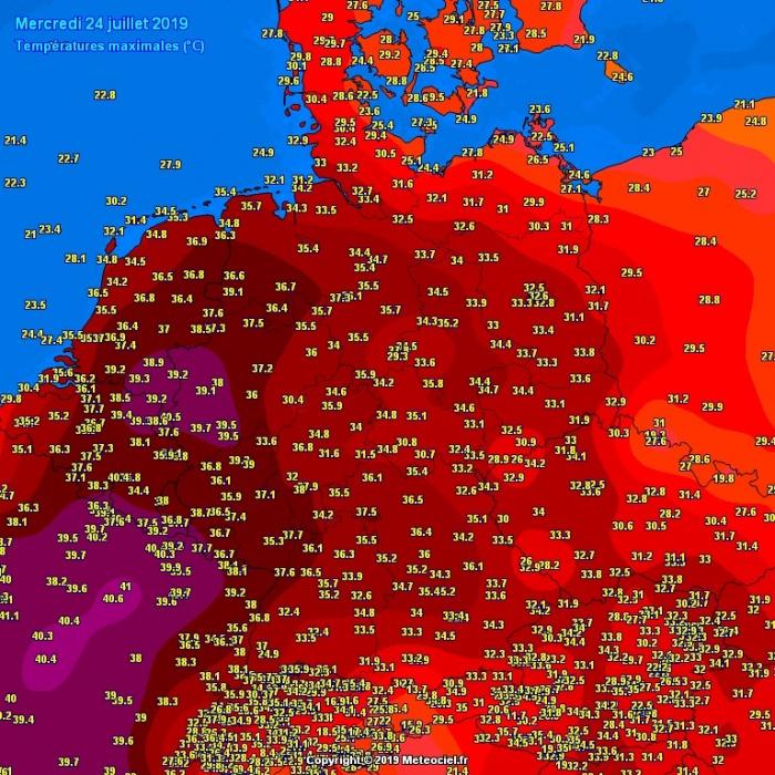 Belgiumban Schaffen-ben 39,3 fokot, Diepenbeek-ben szintén 39,3 fokot regisztráltak. Ezzel ez a két meteorológiai állomás döntötte meg a korábbi, 2015. július 2-án és 2018. július 27-én Eksel-ben mért 38,8 fokot.