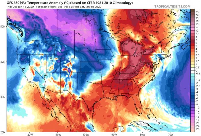 Ez a ciklon akkora kiterjedésű lesz, hogy a felhőrendszerének mérete szinte eléri majd az USA teljes észak-déli kiterjedését, és így a legtöbb államban okoz majd csapadékot is. A ciklon előoldali áramlási rendszerében érkező meleg levegő (850 hPa nyomási szintre kivetítve, ami körülbelül 1500 méteren helyezkedik el) az 1981-2010 közötti klimatológiai átlaghoz viszonyítva 14-16 fokkal lesz magasabb, mint az átlag.