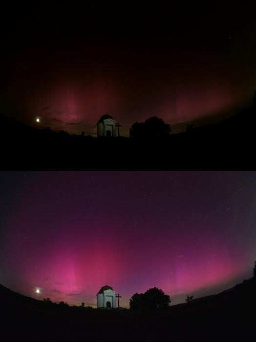 Értelemszerűen, a képpároknál a fölső fotó reprezentálja a szabad szemes észlelés lehetőségeit, míg az alsók már fotótechnikai megoldásoknak köszönhetően lettek igen látványosak. A rekeszérték, záridő, érzékenység (ISO) különböző beállításainak köszönhetően ugyanarról a jelenségről más-más megjelenésű fotó készíthető, és nyilván a készítőknek az a célja, hogy a végeredmény minél esztétikusabb legyen. Sajnos a képszerkesztési utómunkát sokan túltolják 15 perc hírnévért (a félreértések elkerülése végett: ez nem a cikkben szereplő tartalmakra vonatkozik), és mivel az emberek többsége nem fotós, de nem is meteorológus, így óriási népszerűséget érnek el a valóságtól teljesen elrugaszkodott felvételeikkel...