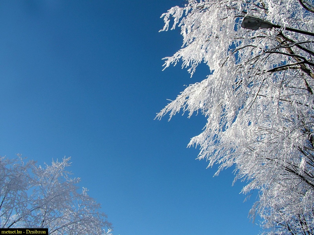 | Leírás: Zúzmarás faágak szikrázó napsütésben. |