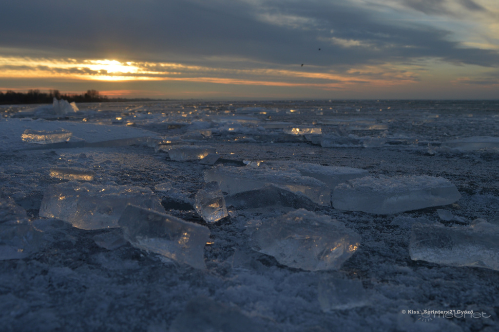| Leírás: Jégmező a Bélatelepi strandon alkonyi színekkel karöltve | |