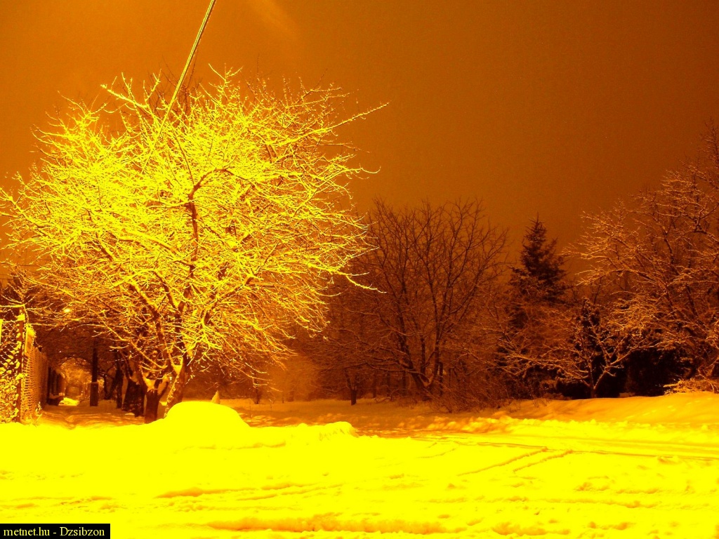 Leírás: Szép téli táj éjjel az utcánk sarkáról.
