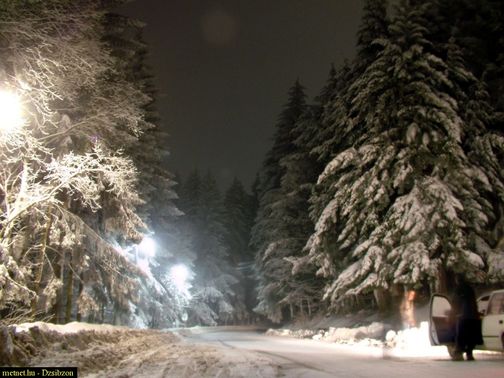| Leírás: Zúzmarás, havas fák este Kékesen. | |