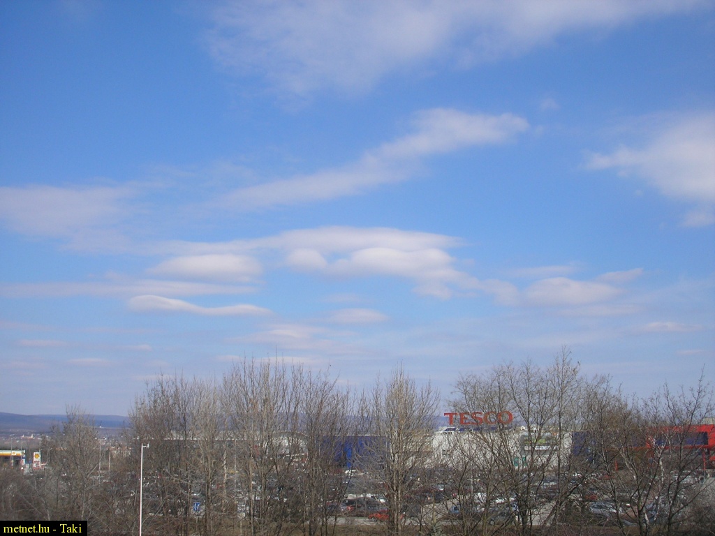 2010-03-06 14:34:11 - Kosakiss Szerintem áttetszõ Stratocumulus lenticularis-ok látszanak a fotón, közvetlenül alattuk CU humilis-ek. (A SC és a CU túl közel helyezkednek el egymás fölött, szinte súrolják egymást - ez az AC len és a CU hum esetében nem képzelhetõ el.) A felvétel iskolapélda a hõmérsékleti inverzió bemutatására!