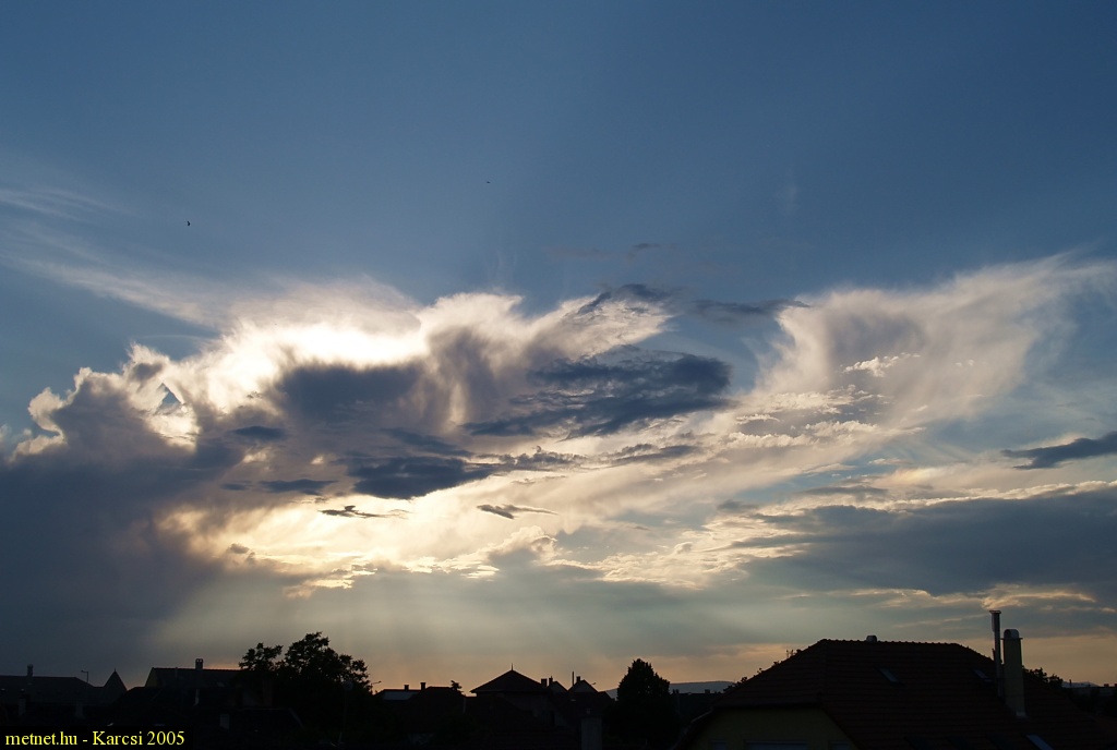 2010-05-29 20:00:17 - Kosakiss ...és egy klassz jobb oldali melléknap. A felbomlás folyamatában levõ zivatarfelhõ leggyakoribb maradványfelhõi a sûrû pehelyfelhõ (Cirrus spissatus) és a kb. 5 kilométer magasságban lebegõ Altocumulus.