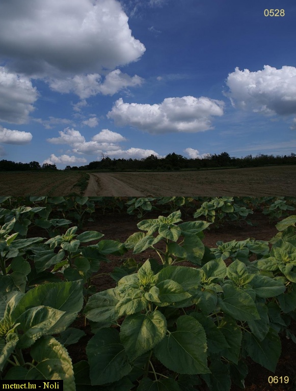 | Leírás: Napraforgó 0528-én a felsõ képen és 0619-én az alsó képen, közben 3 hét alatt kb. 80 centit nõtt... | |