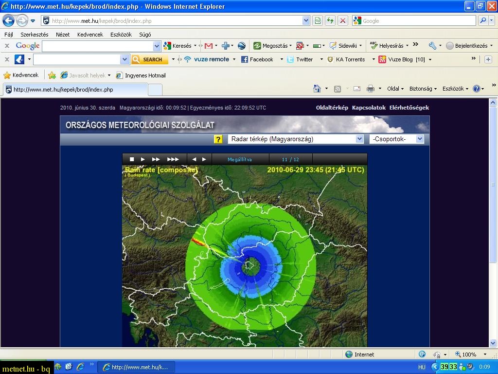 2010-06-30 00:42:36 - bq Azt hiszem sikerült elkapnom azt a pillanatot, amikor a Kökényszemû Katica nevû trópusi ciklon szeme éppen ott lent Budapest felett tartózkodott a radar szerint. :-)