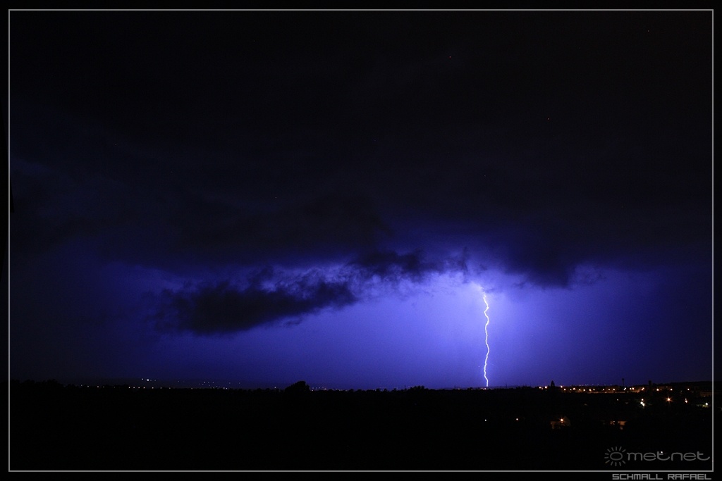 | Leírás: Viszonylag kevés lecsapó villámot produkált a zivatar. Ezek közül egyik itt látható! | |