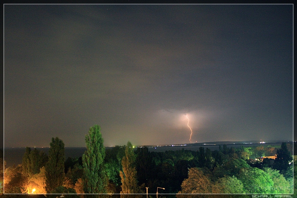 | Leírás: Kelet felé vonuló zivatarból sikerült elcípni egy kis villámot! | |