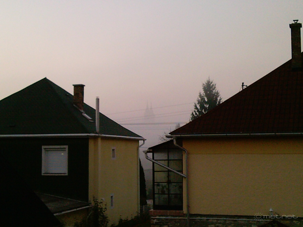 | Leírás: Min +2°c/5°c és ködöt áttörõ napsütés ,távol templom tornya... | |