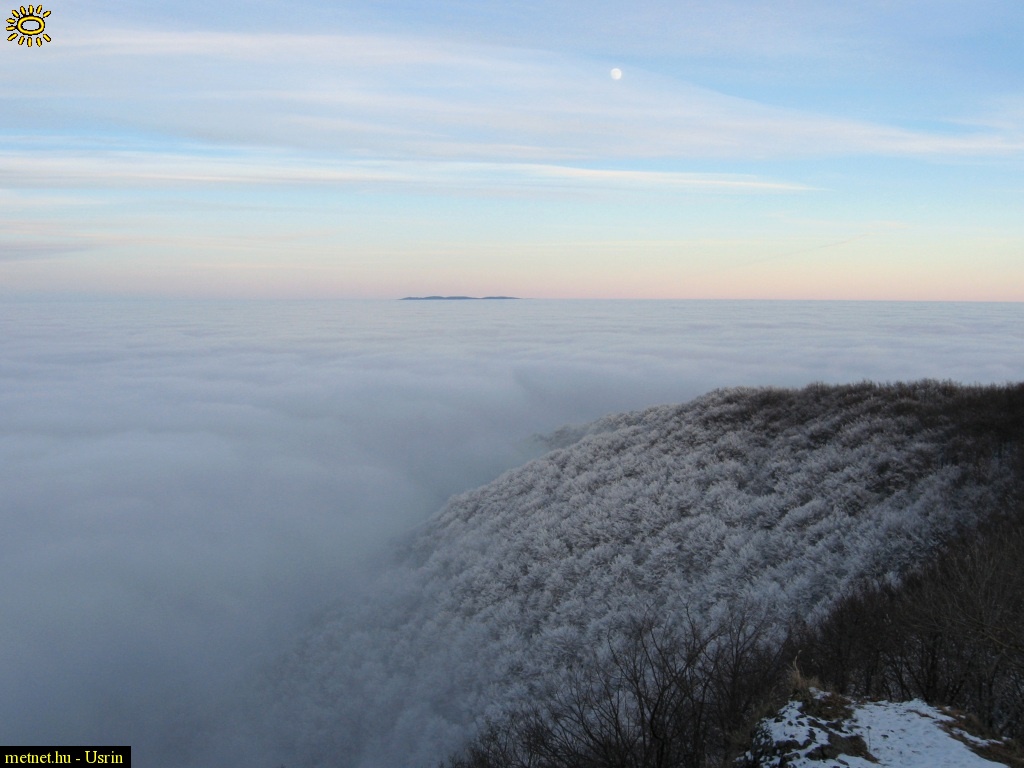 | Leírás: Stratus felülrõl nézve hidegpárna idején a Mátrából; a magasban Cirrus spissatus | |
