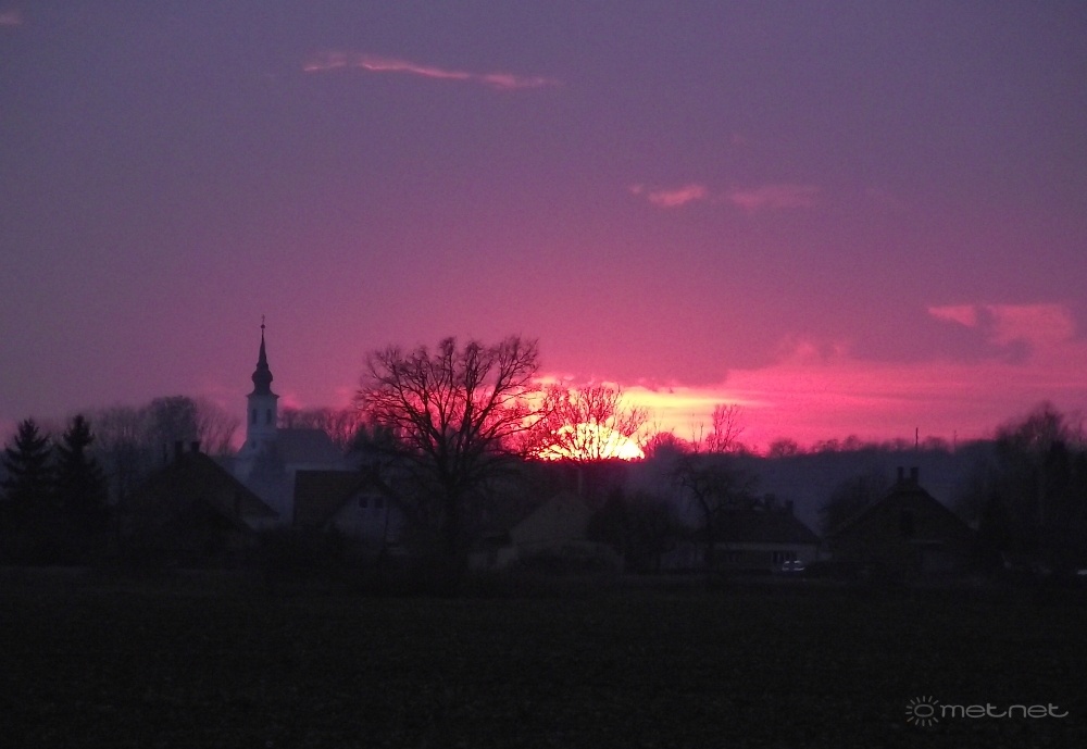 | Leírás: Naplemente a falu mögött. | |