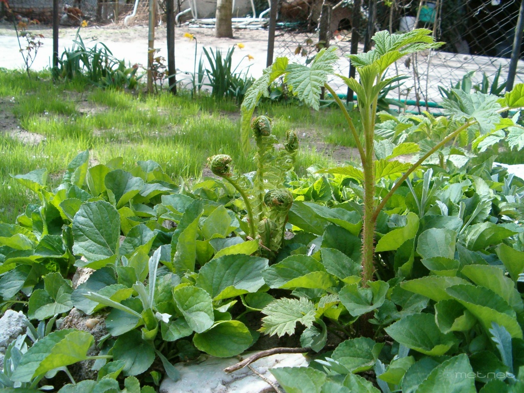 | Leírás: Na ki lesz a magasabb a sziklakert magaslatán? Feltörõ virágok és málna sarjak.Törp papa le fog maradni a héten. |