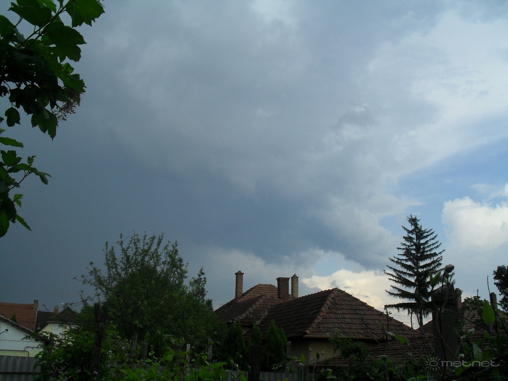 | Leírás: A hidegfront egyik kisméretû MKR-je, átmenetileg peremfelhõsödést okozott, a csapadékzónánál egy impozáns lecsapó-villám is volt. Egy-két zápor is emellett szélerõsödés. | |