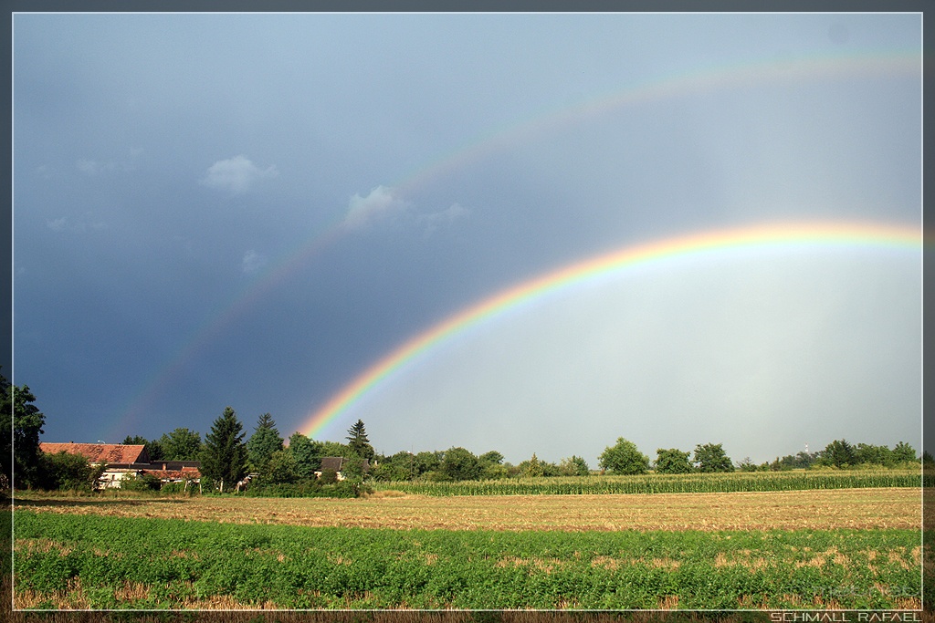 | Leírás: Igen fényes szivárvány! Olyannyira fényes volt, hogy a jobb lába a 300 méterre lévõ erdõsáv ELÕTT volt! | |