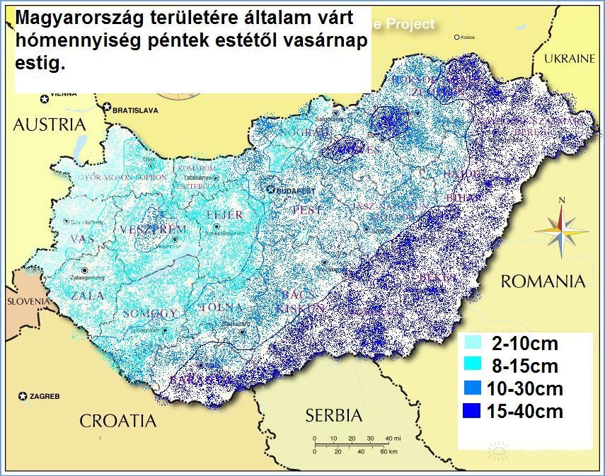 | Leírás: A hétvégi mediterrán ciklon általam várt hómennyiség tippje kis hazánk területére. | |