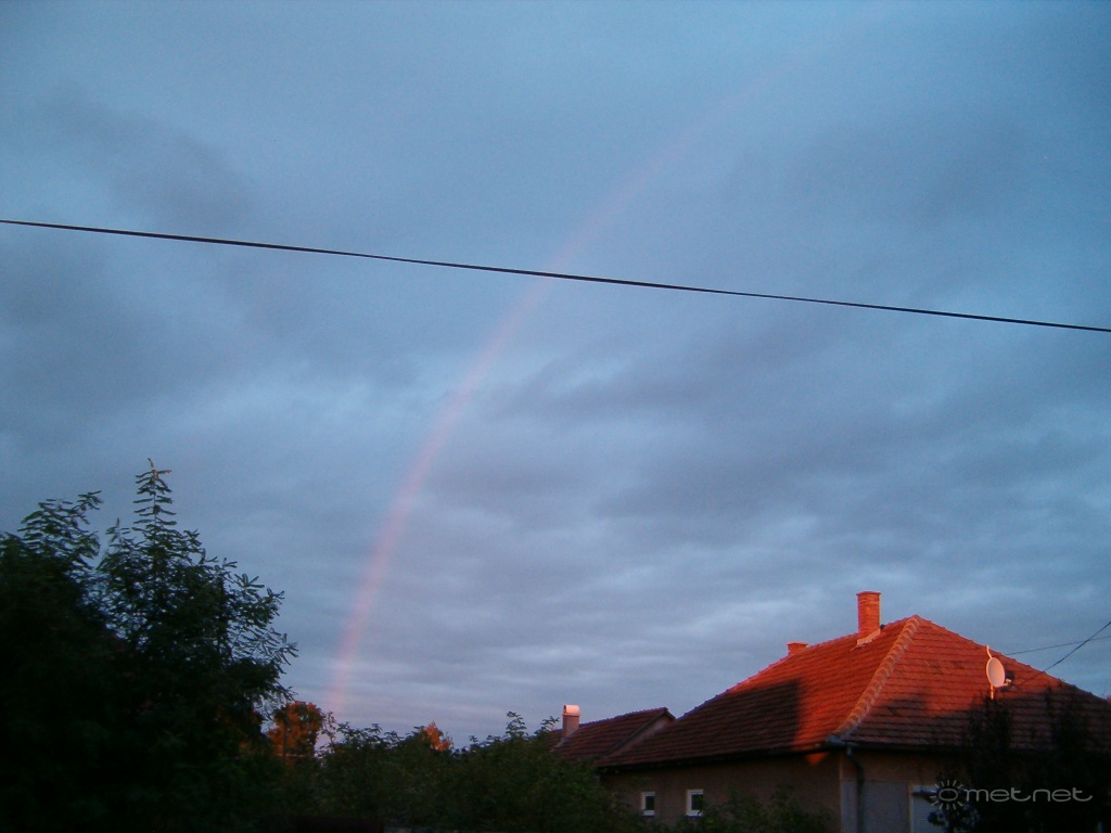 | Leírás: Naplemente permetezõ esõvel. Teljes köríves szivárvány, (nem fért a képre). :)) | |