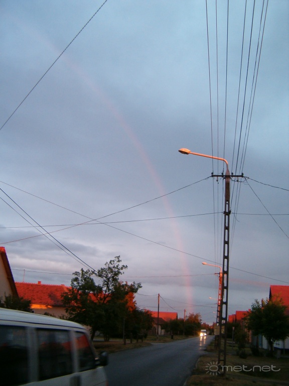 | Leírás: Naplemente permetezõ esõvel. Teljes köríves szivárvány, (nem fért a képre). :)) | |