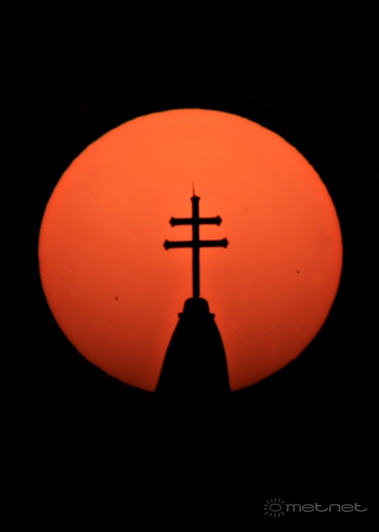 2012-11-15 00:59:05 - Thermometer Nem tehetek róla, de én ezeken a "napos" képeken mindig csak a foltokat figyelem. Itt mindössze 2 nagyobb napfolt látható, hacsak a kereszt nem takar ki továbbiakat.