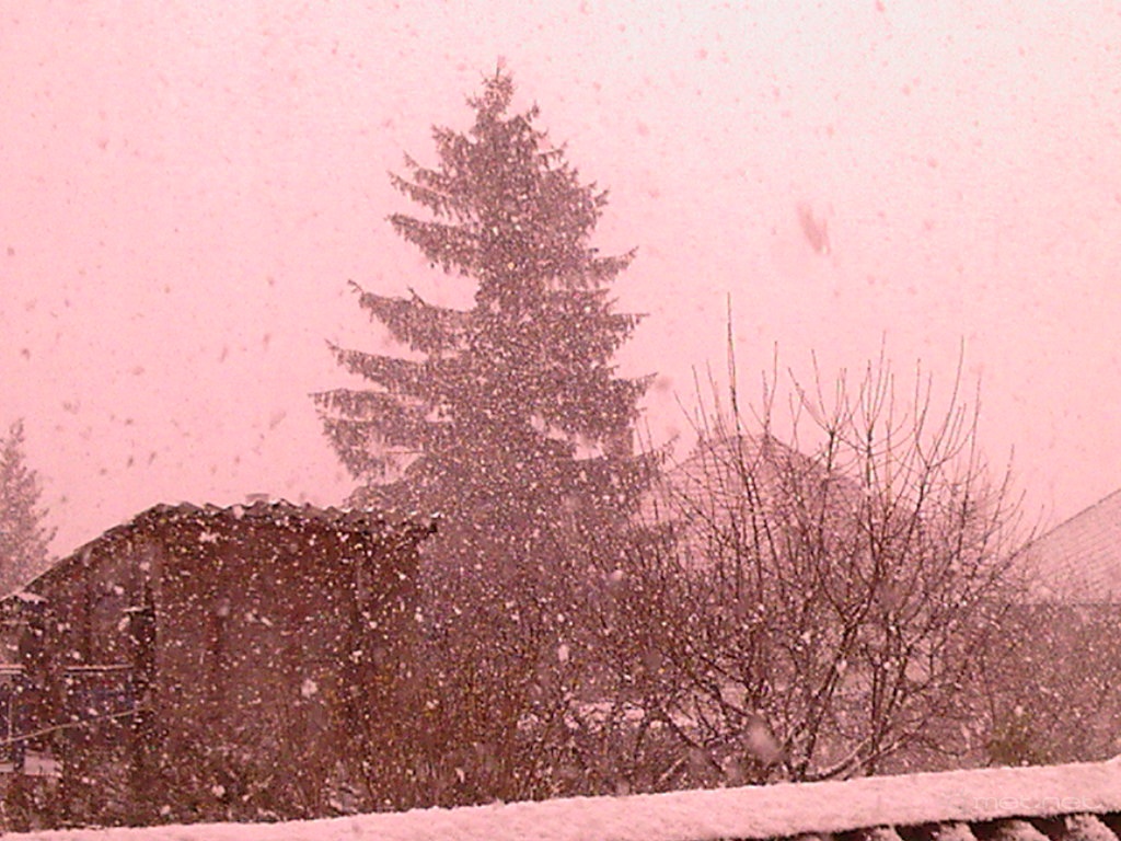 | Leírás: Zirci fehér Húsvét!Hõérzet -11°c idõnként,hõmérséklet: -0,5°c és 2-5cm hótakaró!Téli Szent Húsvéti Ünnepnapon hó,fagy napközben élénk,erõs szél kíséretében lehûlés,intenzív hózáporok váltották a 31mm-i esõt.! >Behavazott fenyõt is alig látni | |