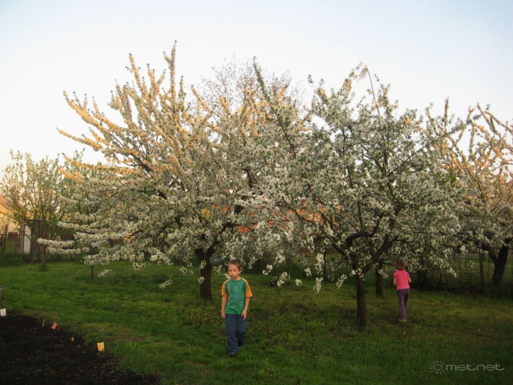 | Leírás: Meggyfák a kertben teljes virágpompában. | |