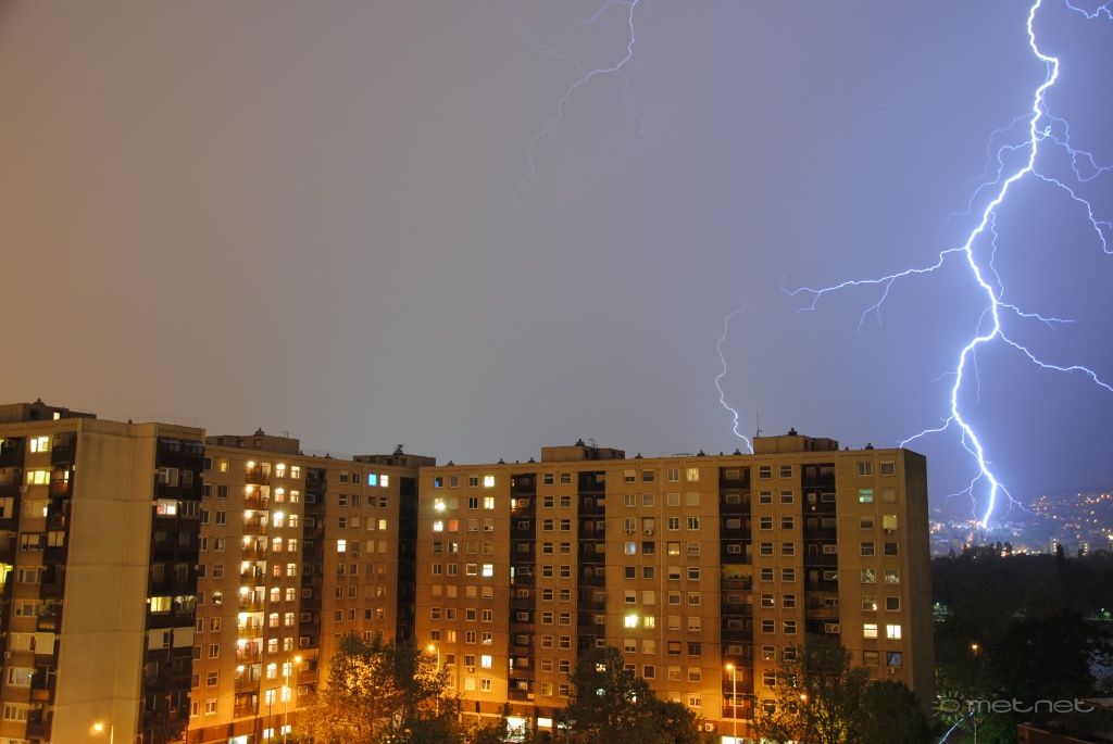 2013-05-05 18:52:54 - Kosakiss Csodaszép, mi több, elegáns villám(csapás). Elektromoskék szine jórészt elnyomja a közvilágitás fényét.