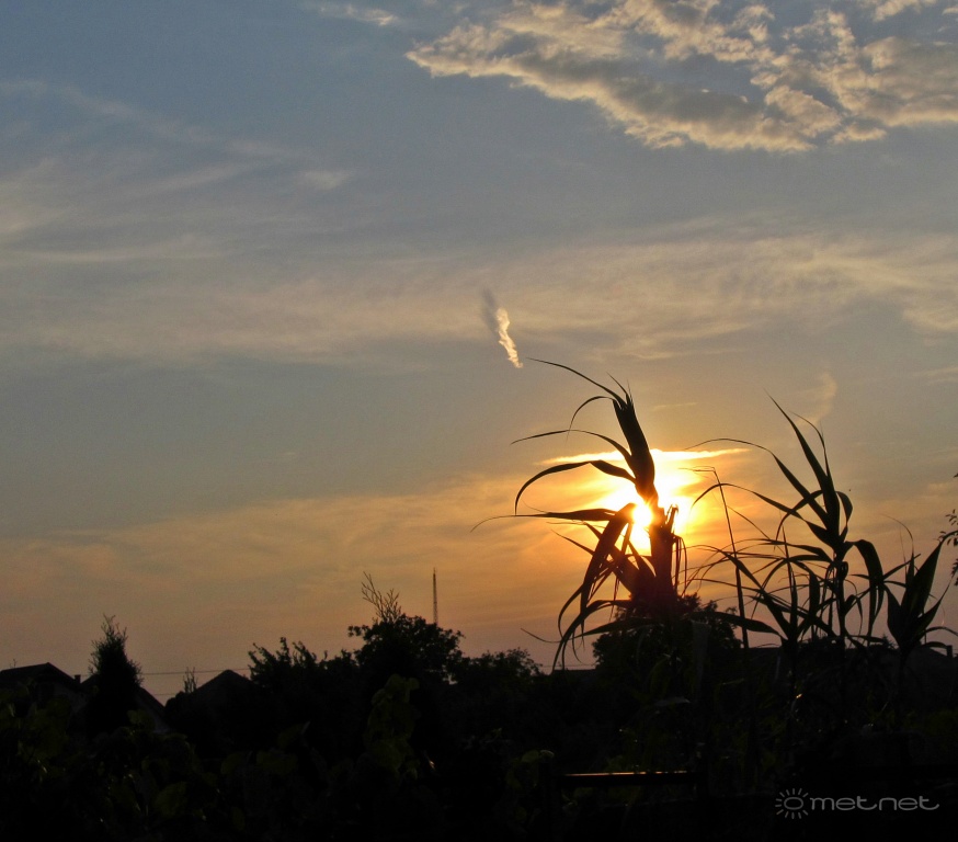 | Leírás: Kondenzcsík árnyék a naplementében. | |