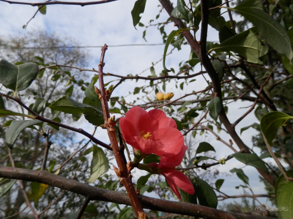 | Leírás: Virágzó japánbirs novemberben Termés és virág egy idõben |