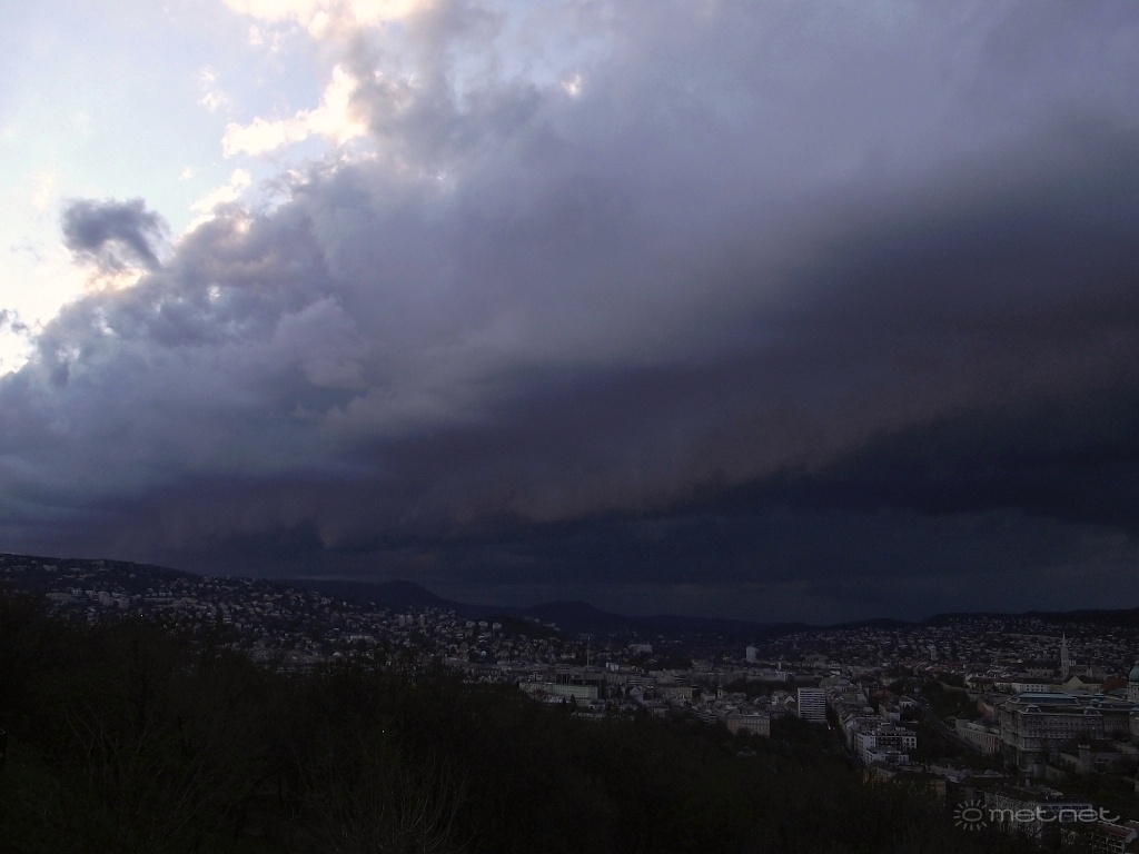 | Leírás: Legyengült záporlánc peremfelhõje a Gellért-hegyrõl. | |