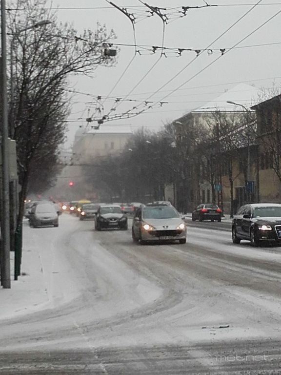 | Leírás: Hazánktól délre örvénylõ mediterrán ciklon egyik csapadékmezeje, -7-8 °C, 3 cm porhó | |