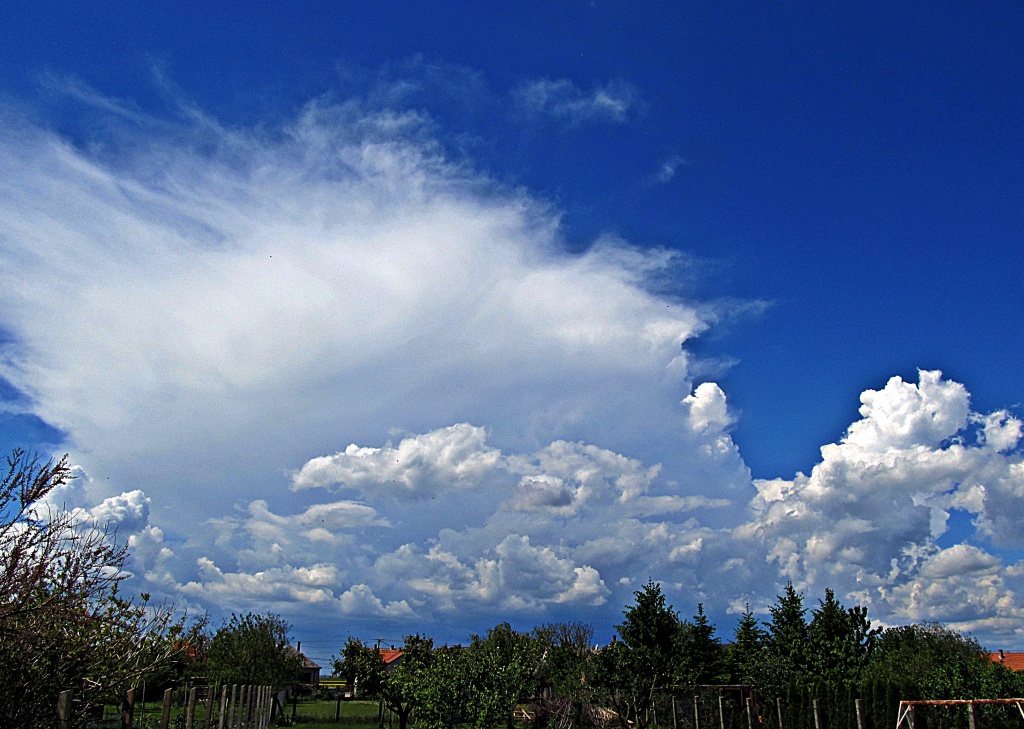 | Leírás: Cumulonimbus capillatus incus (Cb cap inc) , borzas,szálkás, szálas (üllős) szerkezetű zivatarfelhő. | |