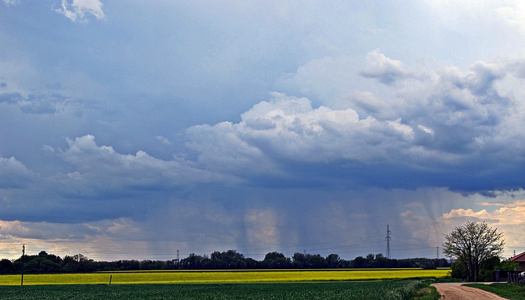 | Leírás: Cumulonimbus ppraecipitatio (Cb pre) , zivatarfelhőből hulló talajt elérő csapadéksáv. | |