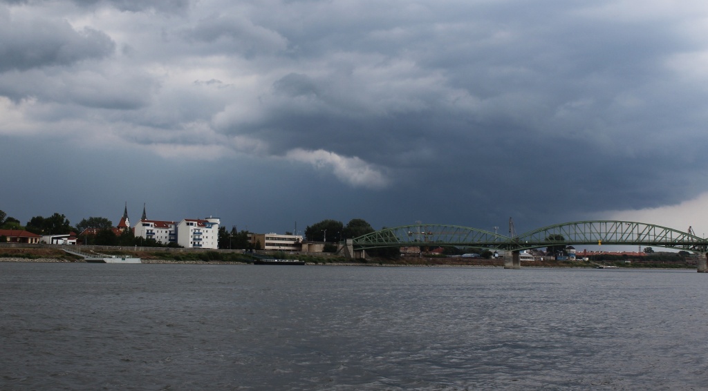 | Leírás: Északkeletre elkerülő zivatar a távolban a Dunapartról Komáromban | |