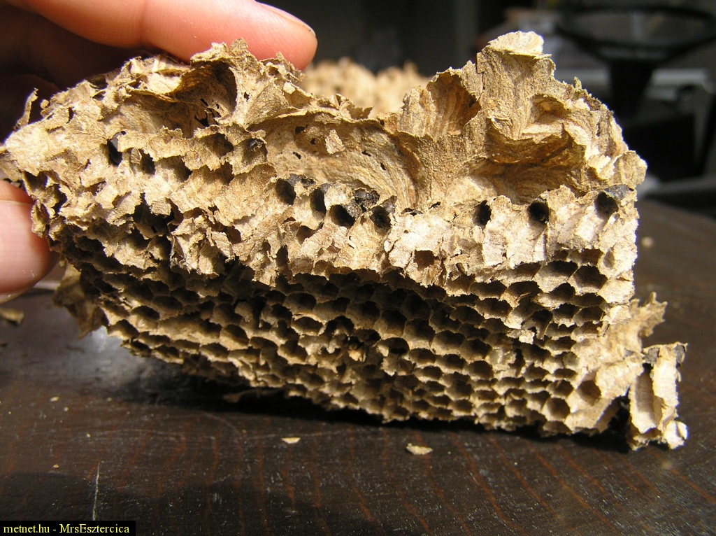 | Leírás: Papírdarázs (?) fészke kívül-belül | |